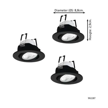 Mehrfachpackung 3x Eglo Led-Spot Saliceto-Z Aluminium Schwarz 4.7W 440lm - 827-865 Abstimmbares Weiß + RGB | 88mm - Ausschnitt 68mm - IP20 - Zigbee Dimmbar