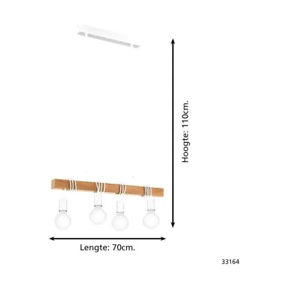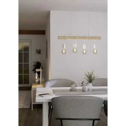 Eglo Suspension Luminaire Townshend Échantillon Blanc Bois | IP20 - Convient pour 4x E27