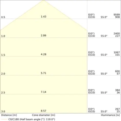 Un angle de diffusion est également appelé angle de rayonnement et indique l'angle du faisceau lumineux provenant d'une source lumineuse. Plus l'angle de diffusion en degrés (D) est petit, plus le faisceau est étroit. Vous voulez en savoir plus? Alors lisez notre blog.
