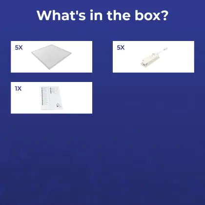 Les panneaux LED sont des solutions éco-énergétiques permettant de remplacer les panneaux classiques équipés de tubes fluorescents. Ce panneau Lot 5x Dalle LED Eco V4.0 28W 3360lm CCT | 600X600 UGR est conçu pour remplacer une dalle classique de 4x18. La consommation de ce panneau LED est considérablement plus faible qu’un panneau classique, à savoir, seulement 28 watts. Une économie d’énergie sans compromettre la qualité de la lumière. Le flux lumineux est de 3360 lumens. La lumière de ce panneau LED est diffusé à degrés et offre un bon rendu des couleurs. La durée de vie moyenne de ce panneau LED est de 70000 heures.