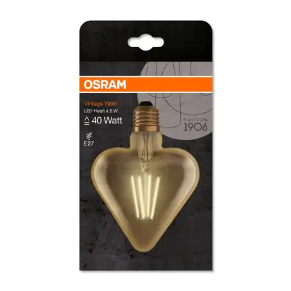 Osram Vintage 1906 LED E27 Heart Filament Dorée 4.5W 470lm - 825 | Remplacement 40W