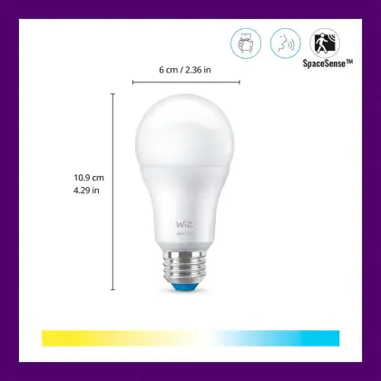 Cette ampoule WiZ Smart LED E27 Poire Dépolie 8W 806lm | Meilleur Rendu De Couleur - Dimmable - Remplacement 60W avec son efficacité lumineuse de lumen par watt vous permettra de profiter d’un éclairage de qualité. Avec sa durée de vie de 25000 heures, vous n’aurez pas à vous soucier de son remplacement avant quelques années.